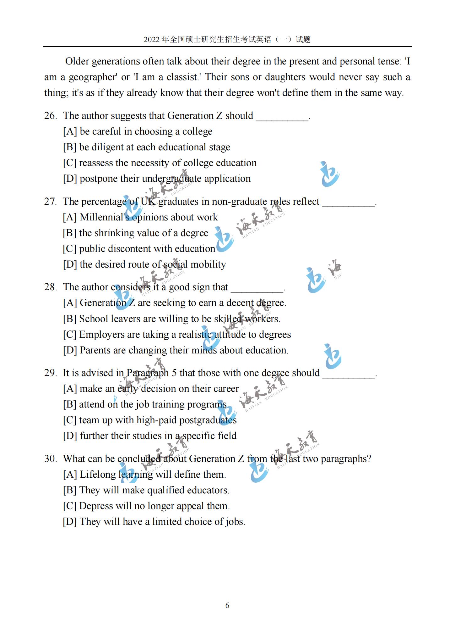 22考研英语考试结束,海天考研整理发布【2022考研真题解析专题】,可以查看22考研英语真题,答案。更多22考研政治真题及答案、22考研数学一真题及答案、22考研数学二真题及答案、22考研数学三真题及答案,请持续关注【2022考研真题解析专题】!