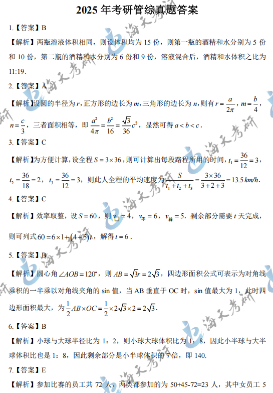 2025考研管理类综合能力真题答案解析